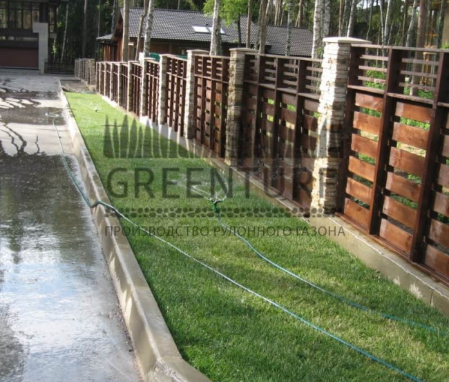 Не рекомендуется ходить по газону в первые 2-3 недели, чтобы не повредить молодой дерн.