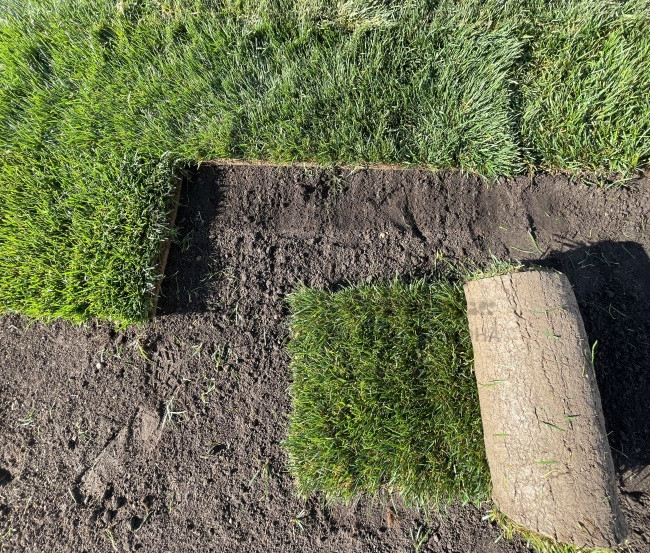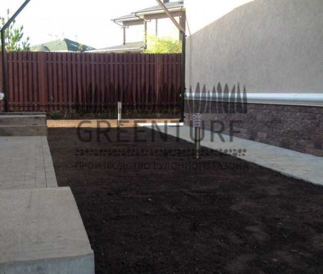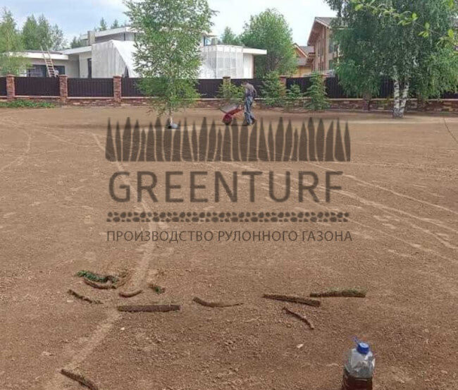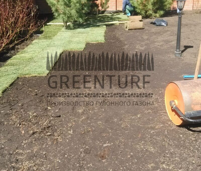 Перед укладкой рулонного газона тщательно готовим основание — рыхлим почву, вносим удобрения и средства от сорняков.